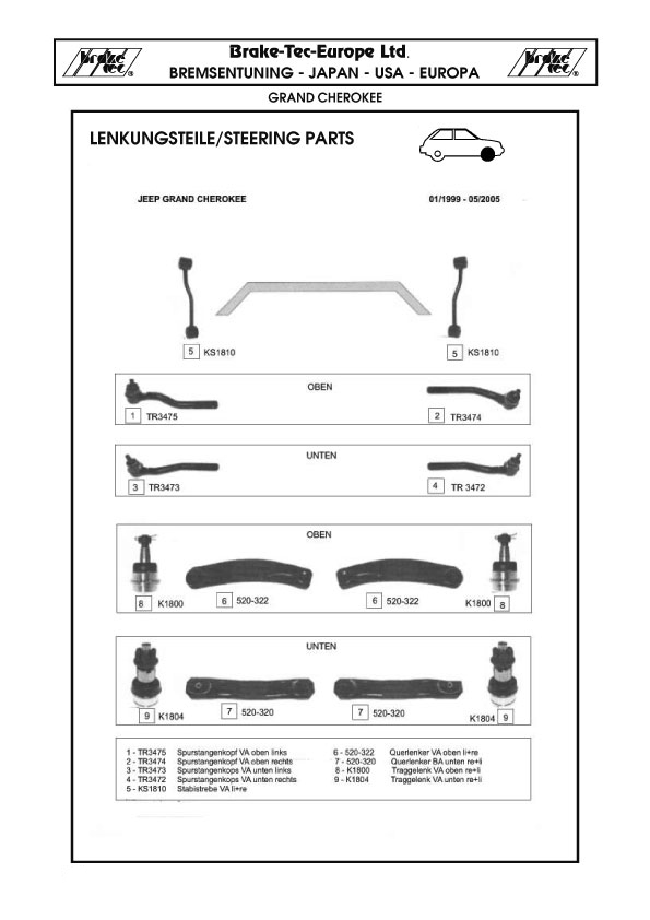 Lenkungs- und Spurstangenteile USA Jeep Grand Cherokee 99 - 05 Spurstangen - Spurstangenköpfe - Lenkungsteile Abbildungen